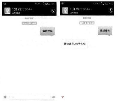 为测试区域性zigbee网络软、硬件设计的有效性,事先在lpc11c14板的嵌入式数据库中存入如表1所示的测试数据。之后,利用手机发送短信向lpc11c14板的gprs模块提出停车请求。接下来,lpc11c14运行停车位寻优算法。根据表1中的数据,经计算后得出结论:005号车位。然后,lpc11c14的gprs模块向手机回复短信。短信的发送和接收界面如图8所示。根据计时结果,从触发短信发送按钮到收到反馈的时间不超过10秒。